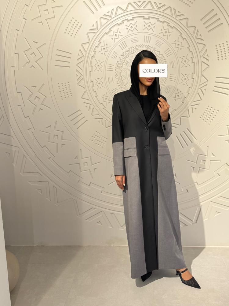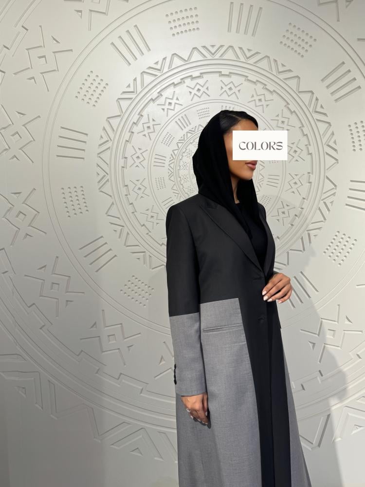 بليزر اسود كتان مع تداخلات باللون الرمادي الفاتح + طرحة اسودوجيوب مع بطانة بالكامل من الداخل واسفنج للاكتاف ✨