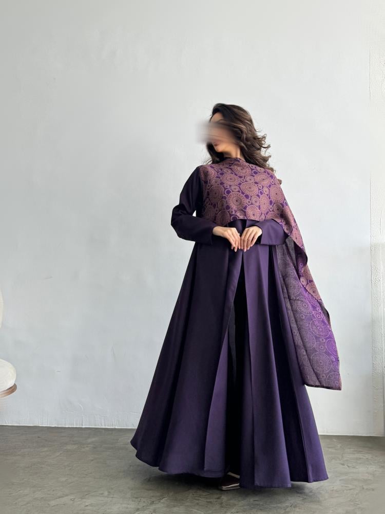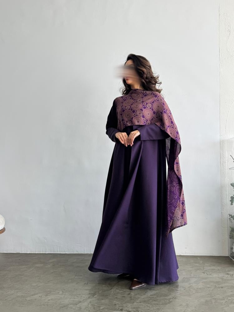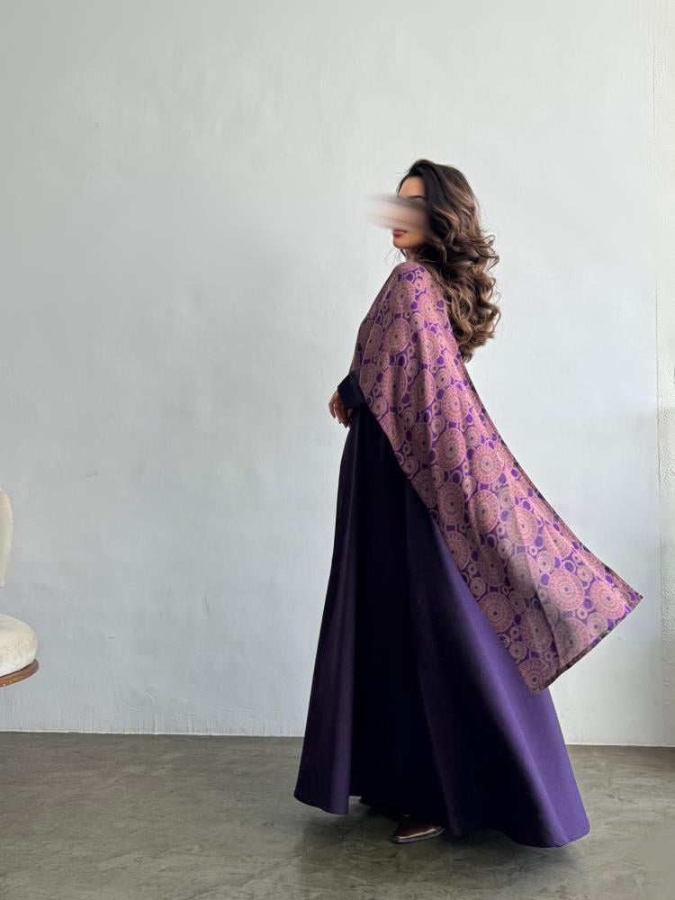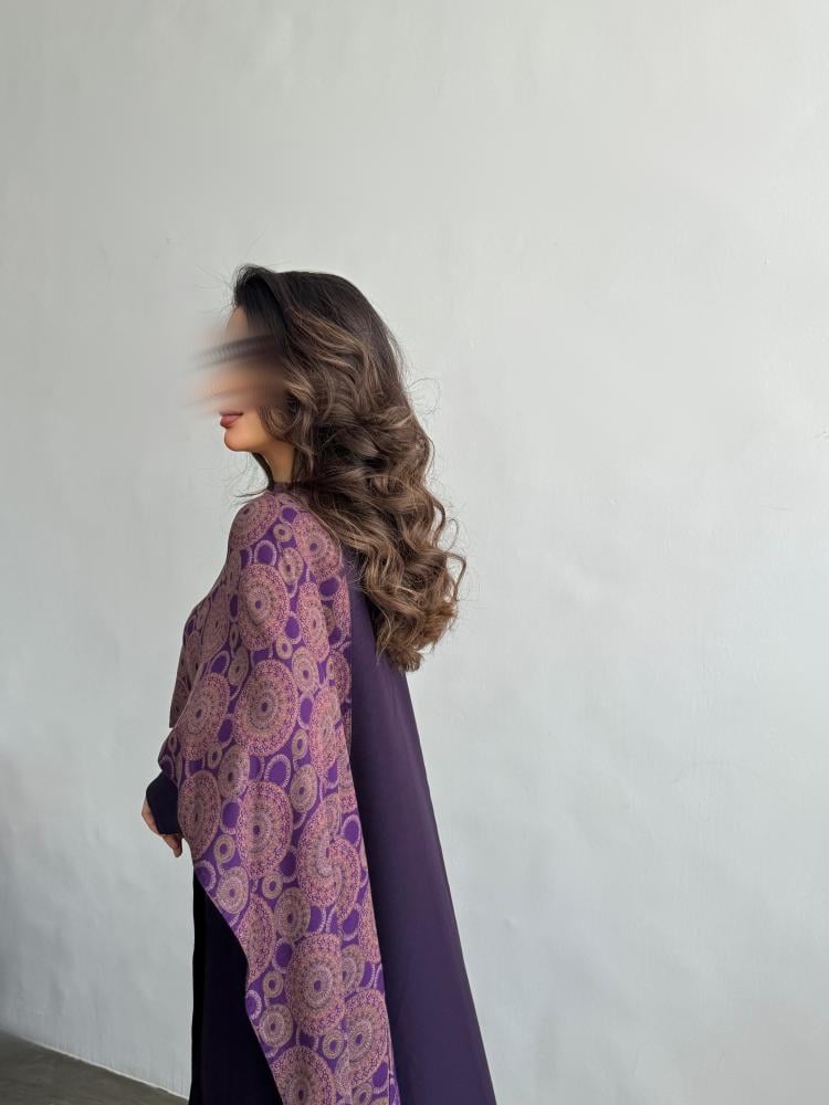 بالاظافة الى شال كشمير ثابت بالعبايه + طرحة بنفسجي ساده ..✨💜