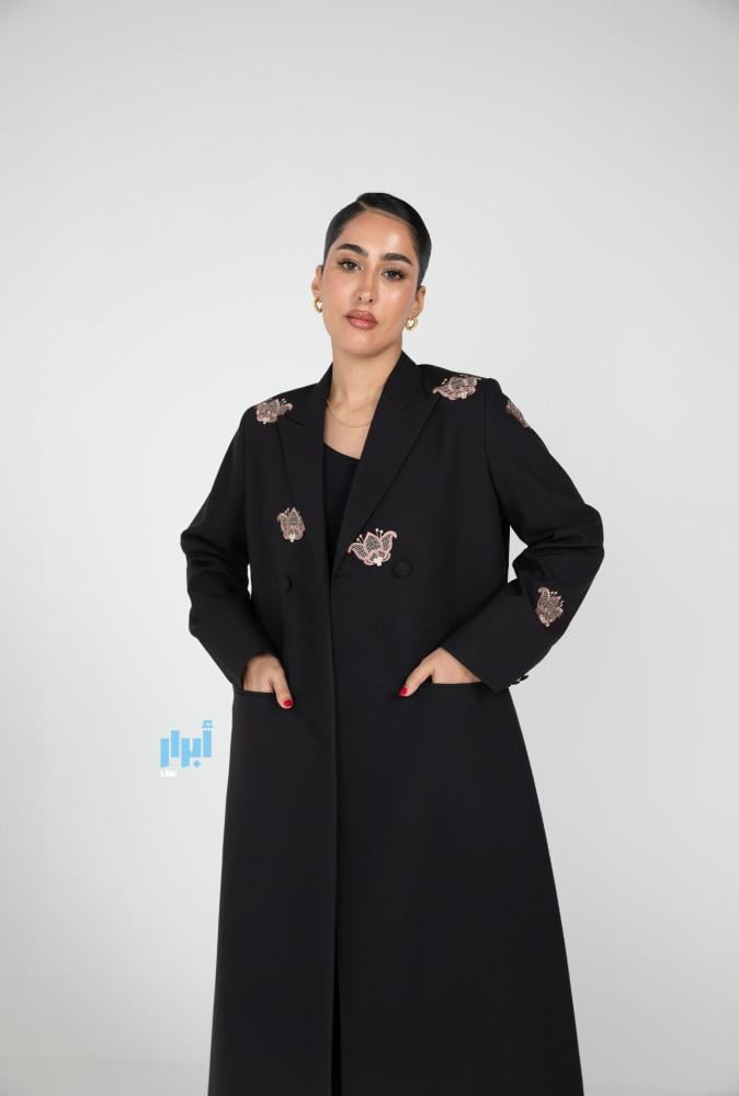 بليزر كتان اسود بتطريز خاص في ابرار لاين بالاظافة الى طرحة اسود ساده …✨💙