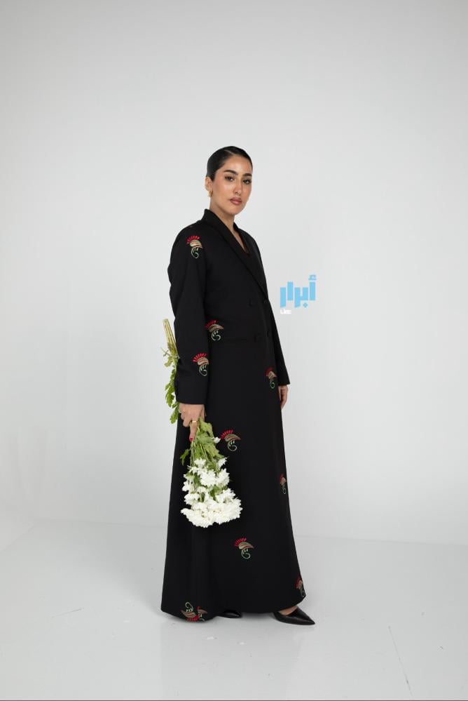 بليزر كتان اسود بتطريز خاص في ابرار لاين بالاظافة الى طرحة اسود ساده …✨💙