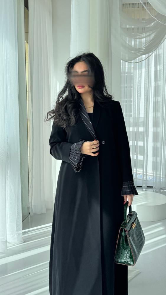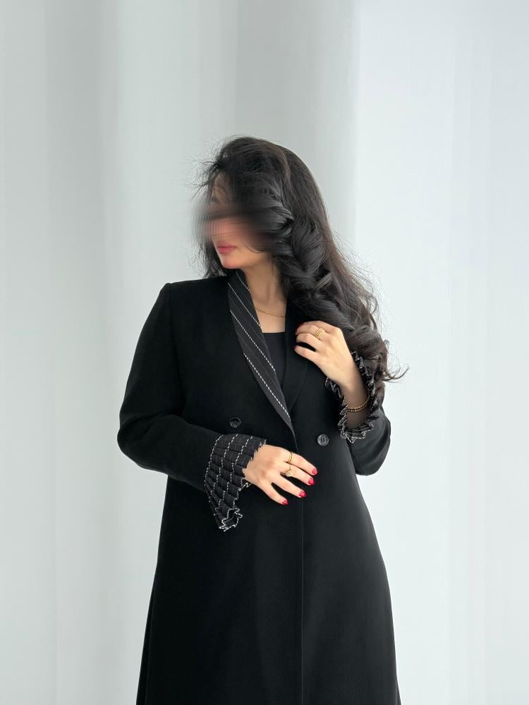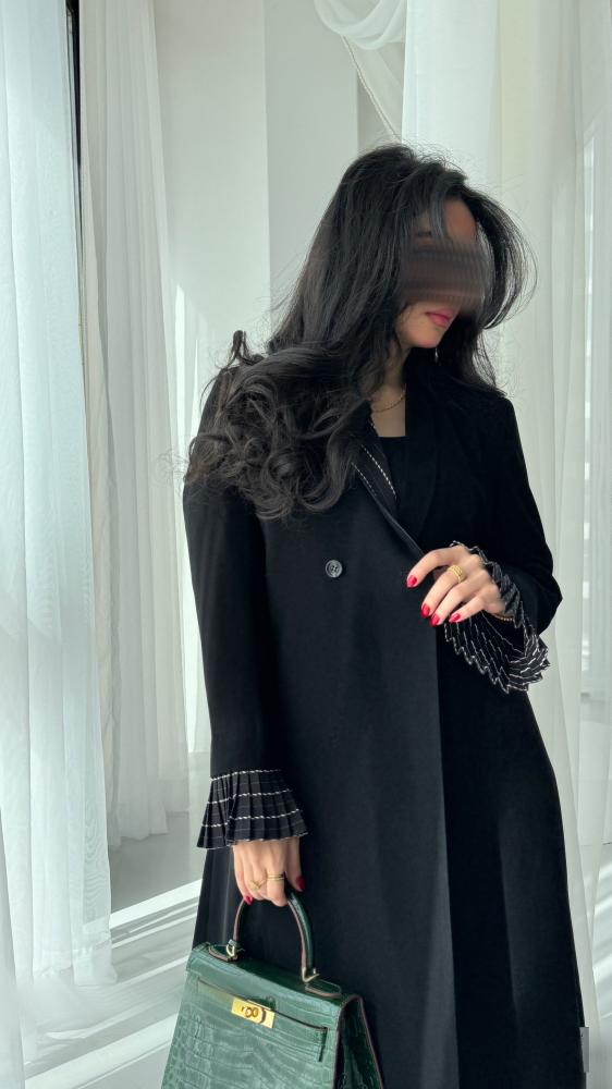 تألّقي بإطلالة فاخرة ومُلفتة مع هذا البليزر الراقي من أبرار لاين، بتصميم أنثوي أنيق يجمع بين البساطة والتفاصيل المتقنة. مصنوع من كريب ملكي ناعم بلونه الأسود الفاحم، ليمنحك حضورًا راقٍ في كل مناسبة.