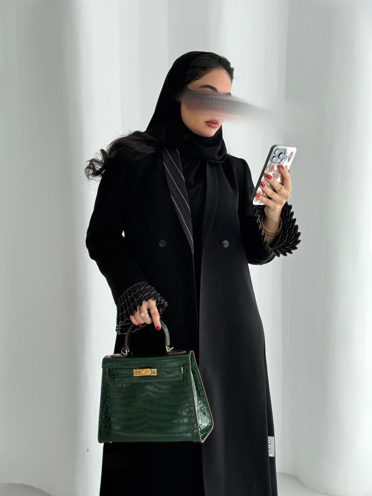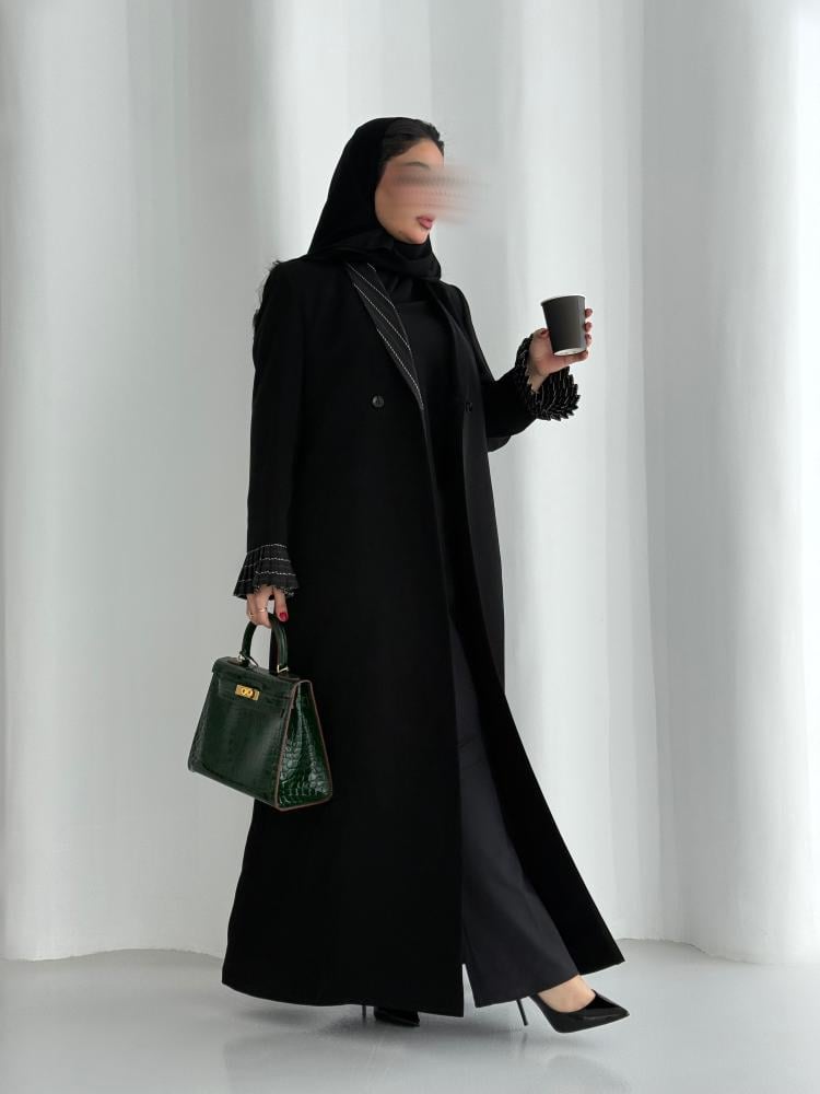 يأتي مع طرحة اسود سادة لتكتمل الإطلالة بأسلوب أنيق وموحّد.