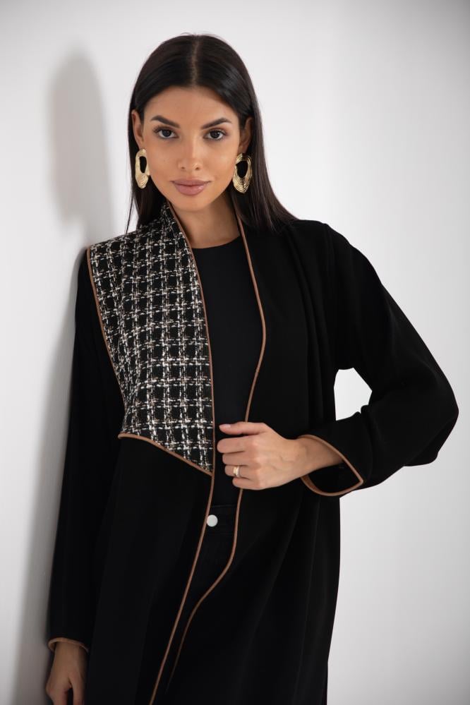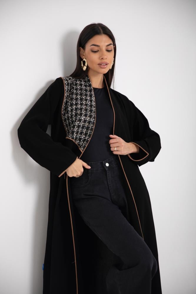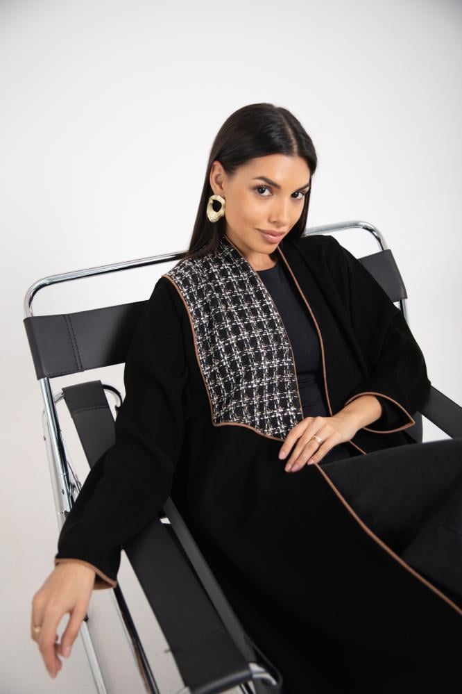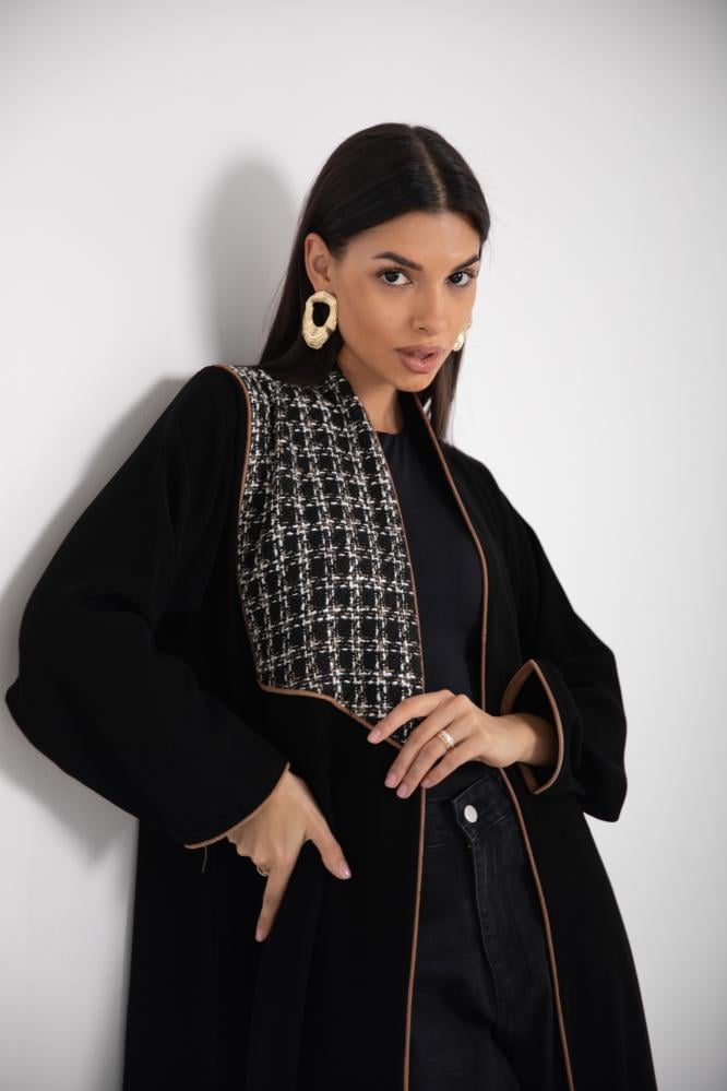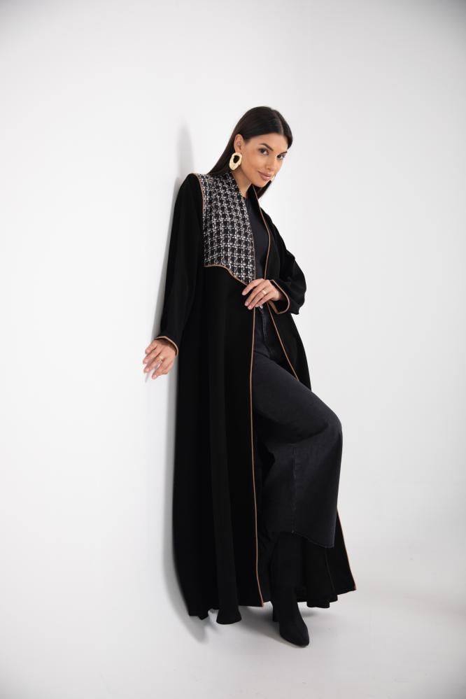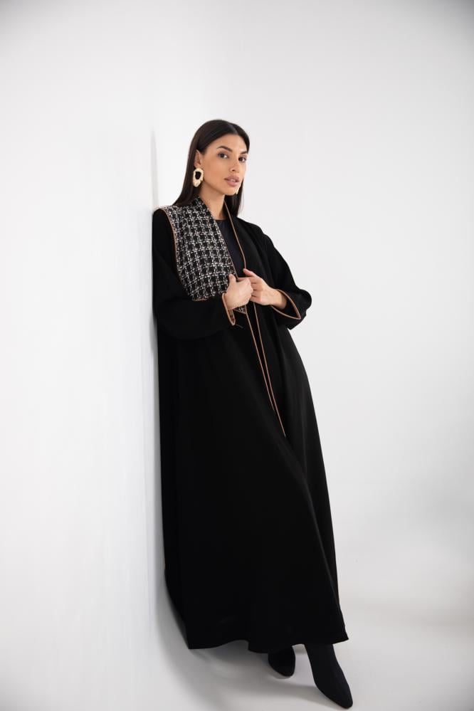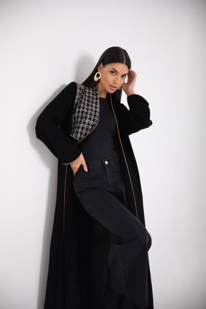 وارتدي قطعه من الكريب الاسود الفاحم مع لمسات شتويه بالاظافة الى طرحة اسود ساده تتميز بقصه نص كلوش لتمنحك الراحة في المشي والاناقه في الاطلاله ✨🩵🪄💙