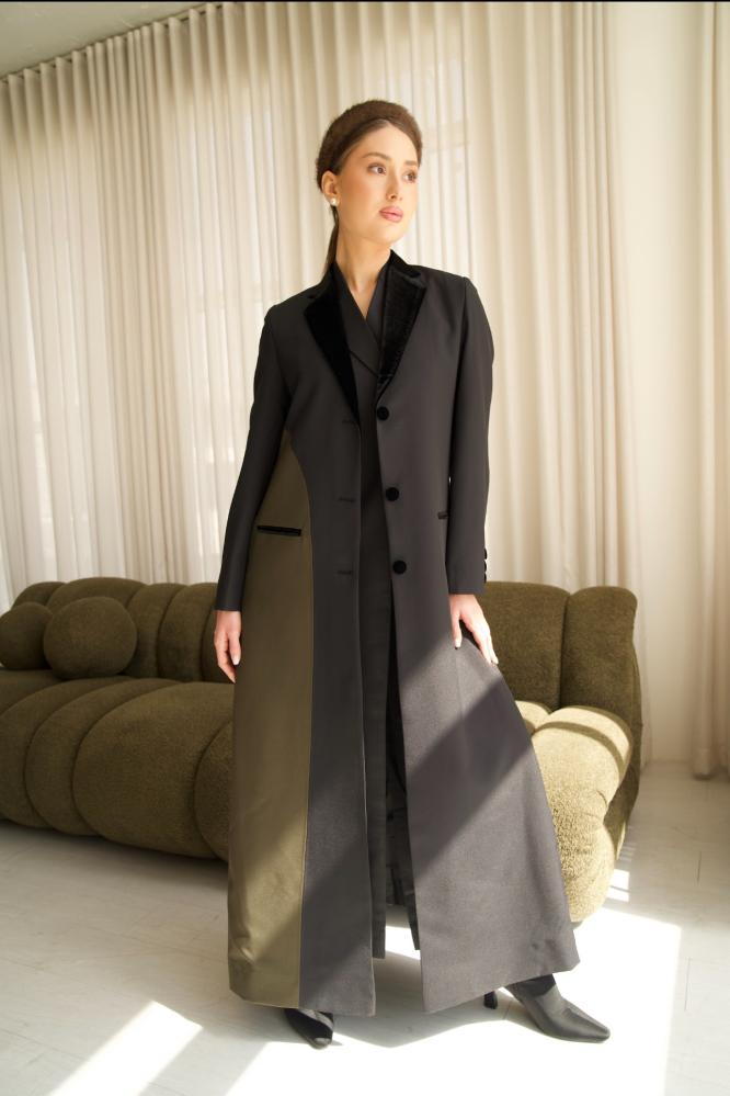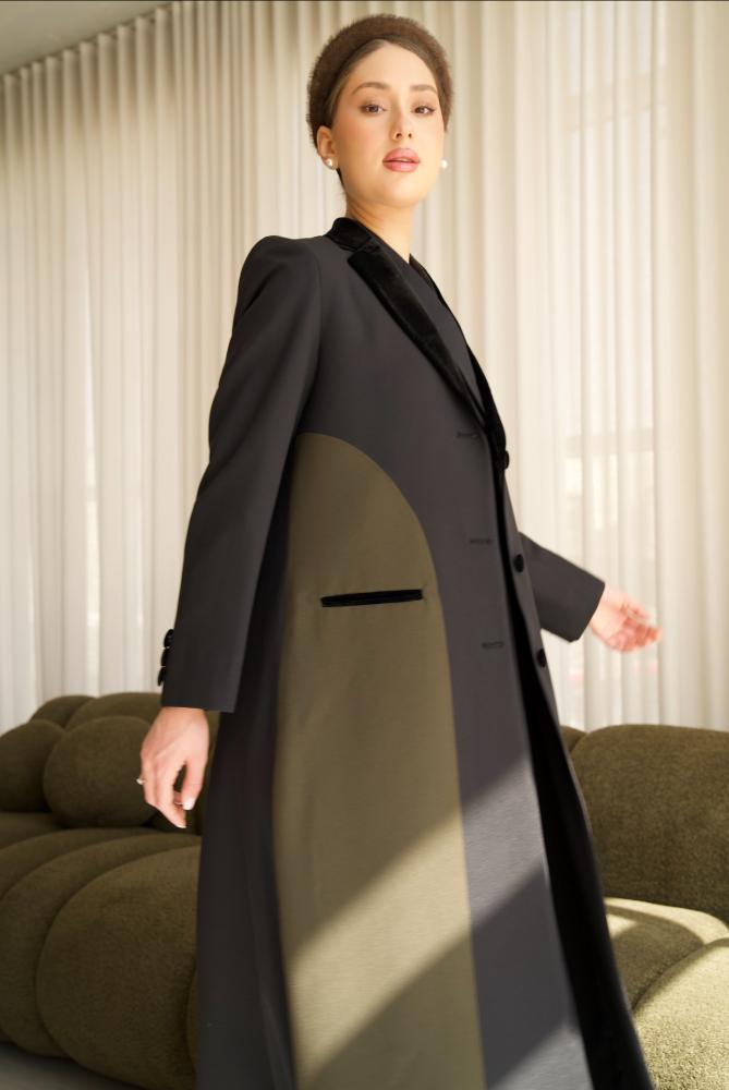تألّقي بأناقة فاخرة مع هذا البليزر المصمم من قماش الكريب الأسود الفاخر بتفاصيل شتويه تضيف لمسة دفء وأنوثة. مبطن بالكامل لراحة مثالية في الأجواء الباردة، مع أكتاف مدعّمة بسفنج تمنحك إطلالة متناسقة وجذّابة. يأتي مع طرحة أسود سادة ليكمل طلتك الشتوية بكل أناقة 🪄🩵🧐